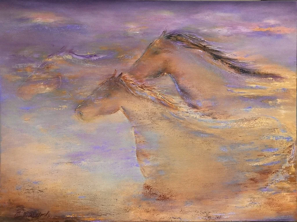 Although I’ve always had a love and respect for the beauty and spirit of horses, my inspiration to paint them in their glorious movement and grace, while on the run, didn’t come to me until approximately 2014. Their inspiration is never ending.